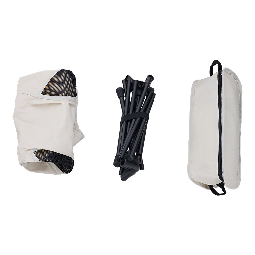 This simple yet elegant camping chair is designed for those who explore a high-quality lifestyle. Constructed from a premium metal frame, it is robust and supports heavy loads, ensuring it does not deform even after prolonged use. Paired with 600D Oxford cloth and breathable mesh fabric, it guarantees a dry and airy experience, preventing any feeling of stuffiness. Additionally, the high-back design increases the contact area, conforming well to the curves of the back, thereby providing optimal support and reducing fatigue from prolonged sitting. Whether for outdoor camping, fishing, or beach relaxation, it seamlessly fits every occasion, adding a touch of comfort to each of your activities.