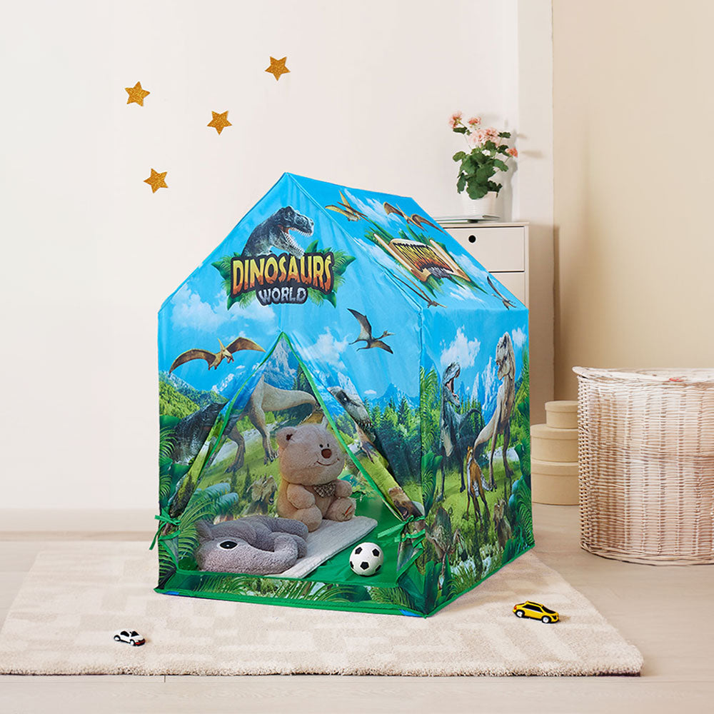 Transport young adventurers back to the Jurassic era with this polyester space house play tent. Perfect for young dinosaur enthusiasts, it inspires creativity and imagination. With its vibrant dinosaur-themed design, it offers a fun and engaging play space for children. Made from high-quality polyester, it is durable and easy to set up, providing endless hours of fun and exploration.