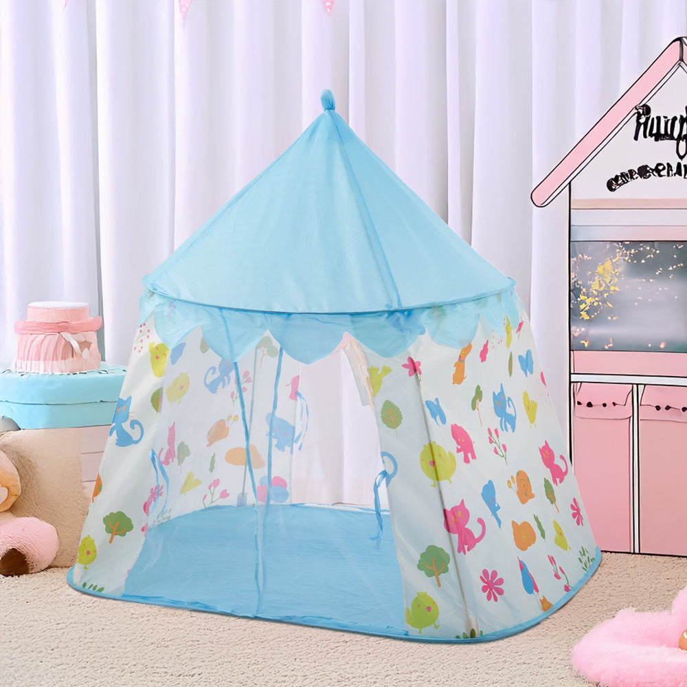 This charming play tent offers your child a magical space where they can unleash their imagination. The light blue exterior paired with fun cartoon patterns captures the attention of children and creates a private space exclusively for them. Whether for outdoor camping, indoor play, or as a small corner retreat, this tent is the perfect choice for children to explore and create adventurous stories. Designed to be both lightweight and easy to set up, perfectly suited for a variety of indoor and outdoor play scenarios.