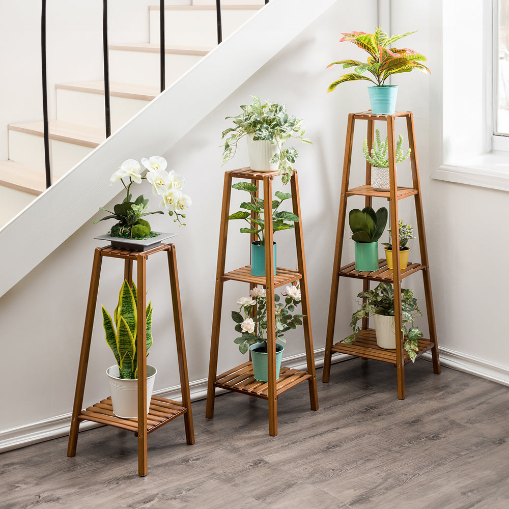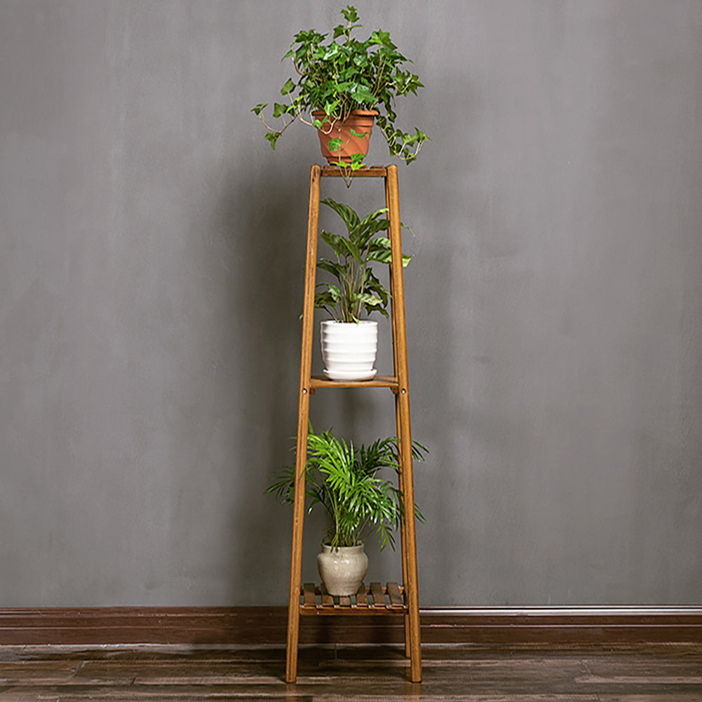 Refine your indoor gardening setup with this vintage-inspired tiered plant stand. Crafted from high-quality solid wood and finished in a classic brown hue, its vertical structure serves as an elegant focal point in any room. The slatted shelves ensure efficient water drainage, while the spacious gaps between tiers provide your plants with plenty of sunlight to thrive.