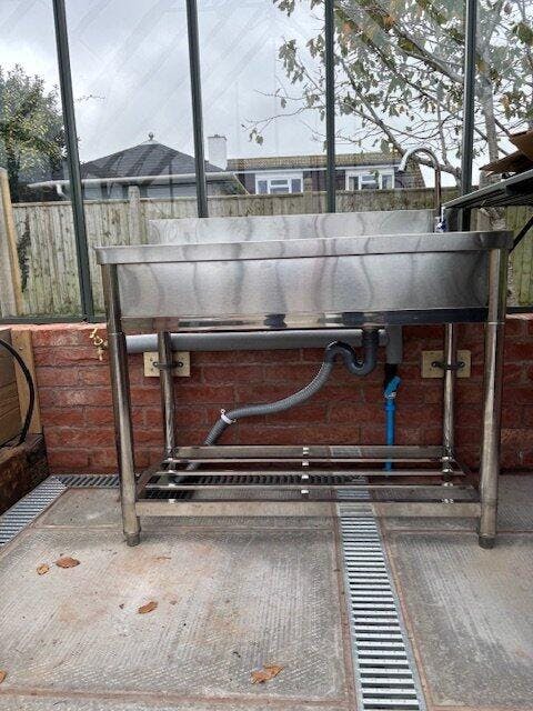 We needed a small sink for our new greenhouse and decided that the Garden Sanctuary SS Comercial sink would suit. The sink appears to be manufactured in China.