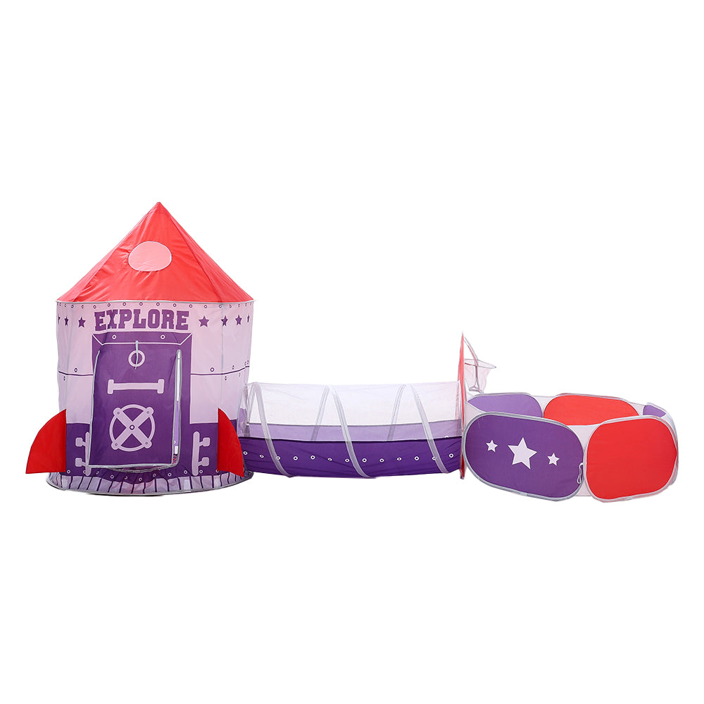 Let your little ones create their adventures with this portable play tent. Featuring a space theme that is popular among the kids, this tent set includes a house tent, a long tunnel and a ball pit that can be set up together or separately. The space tent is made of polyester material to ensure the safety of children, all materials are non-toxic and non-irritating. The tent is easy to set up and take down thanks to the convenient pop-up function and is suitable for both indoor and outdoor play.